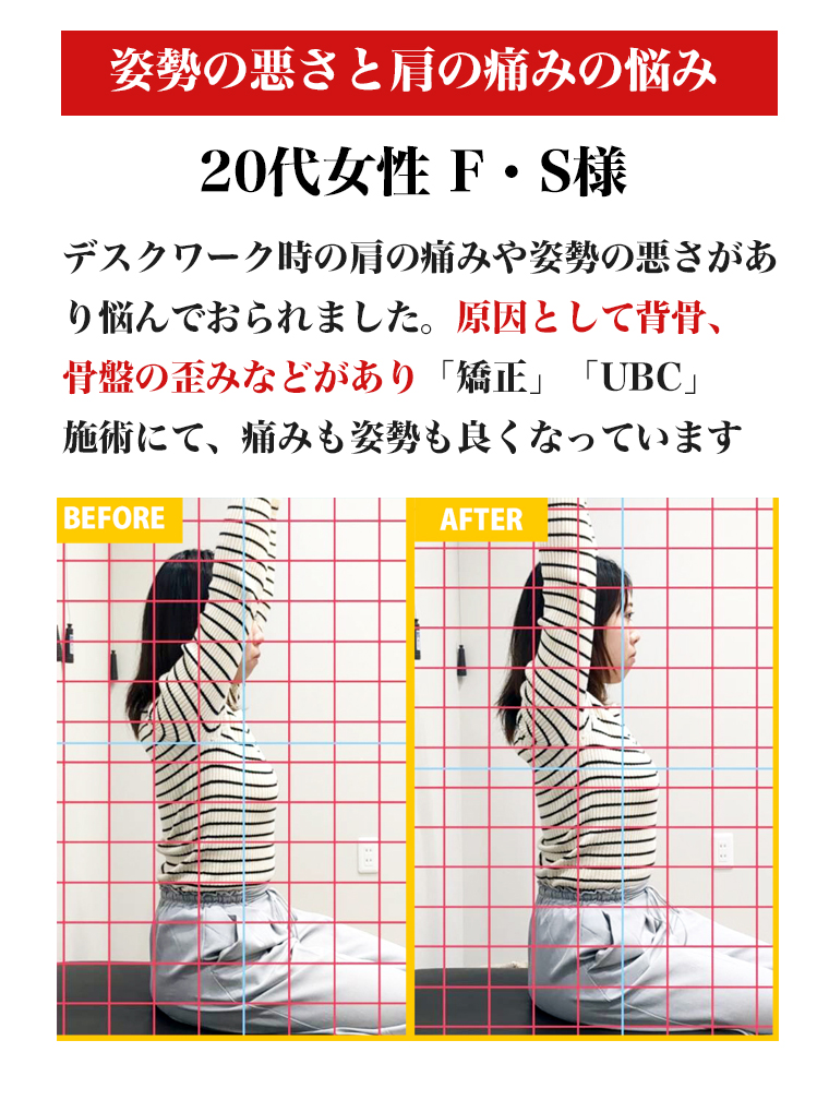 肩こり・腰痛・頭痛・身体の歪みなど、慢性的な不調から急な痛みまで対応。「こんな症状でも大丈夫かな?」というお悩みもご相談ください。