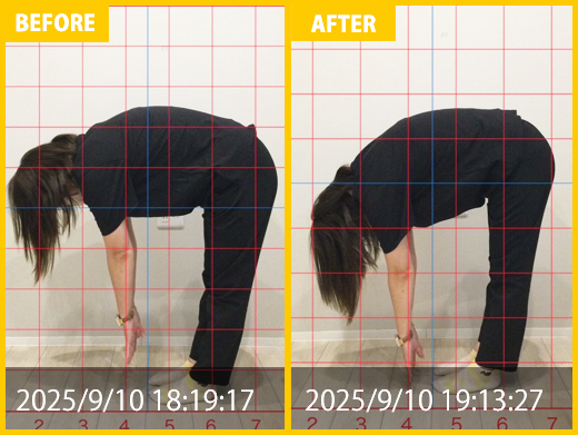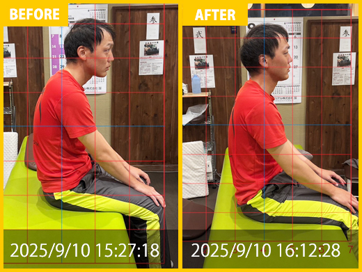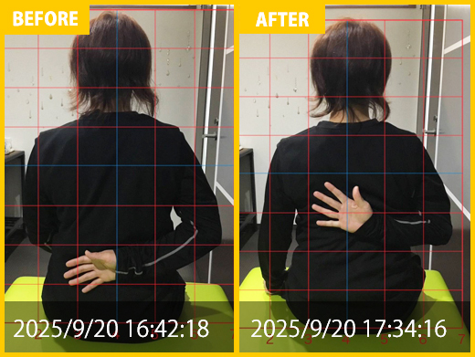 姿勢の悪さ 胸椎のズレによる腰痛や首の凝りがありましたが、CIP施術などを行い痛みはほぼ消失されています。