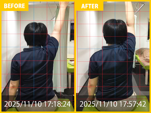 初診時は肩の痛みが出ていましたが定期的に通院を重ねるにつれて徐々に改善してきています。 継続して治療されています。