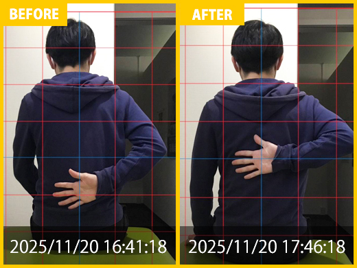 初診時は腰の痛みが出ていましたが、1ヶ月間、定期的に通院を重ねるにつれて改善されています。