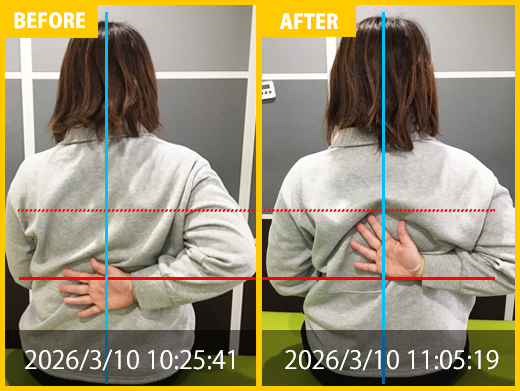 筋トレ中の腰の痛みと姿勢の悪さが気になり、矯正施術にて改善【40代女性】首の痛みの悩み