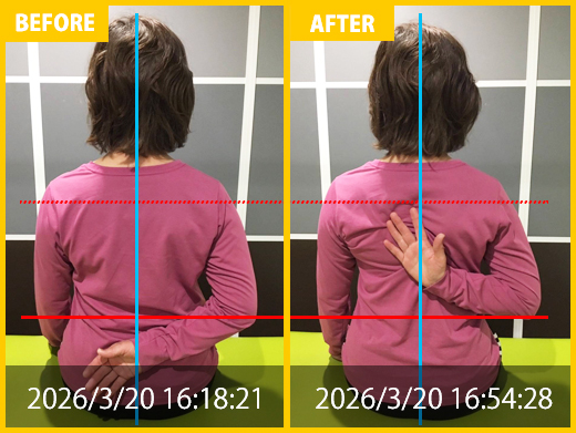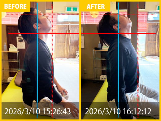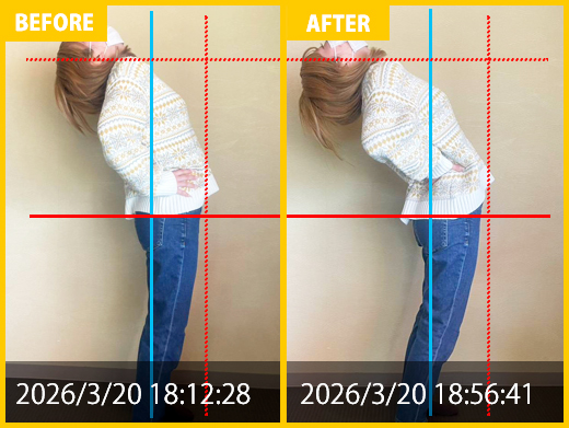 首と肩の痛みで来院、骨盤の歪みを改善し痛み消失、姿勢も改善首と肩の痛み、頭痛も改善しました。