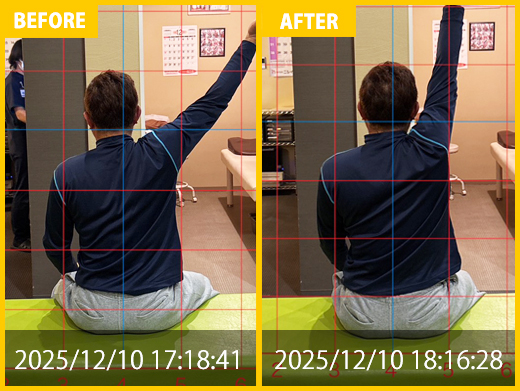以前は水泳中など痛みが出ていましたが施術により今では痛みは消失。可動域制限が残る為、継続してメンテナンスを行なっている。全身の疲れの悩み