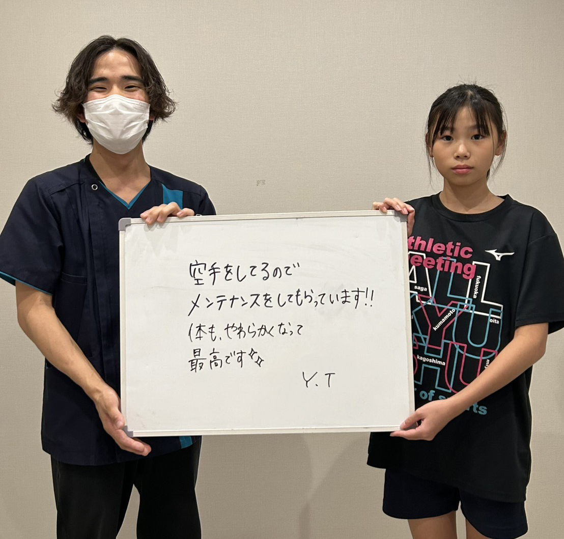 空手をしているのでメンテナンスをしてもらっています!!体も柔らかくなって最高です☆腰痛・肩こりの悩み