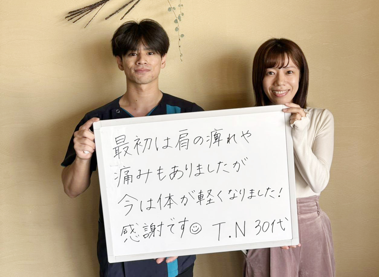 現に通って肩こりや産後はけなかったズボンがはけるようになりました。腰痛の悩み