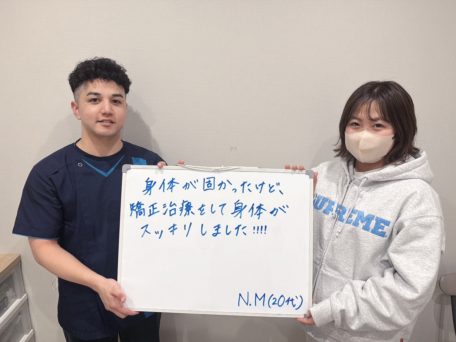 身体が固かったけど、矯正治療をして身体がスッキリしました!!!!肩こりの悩み